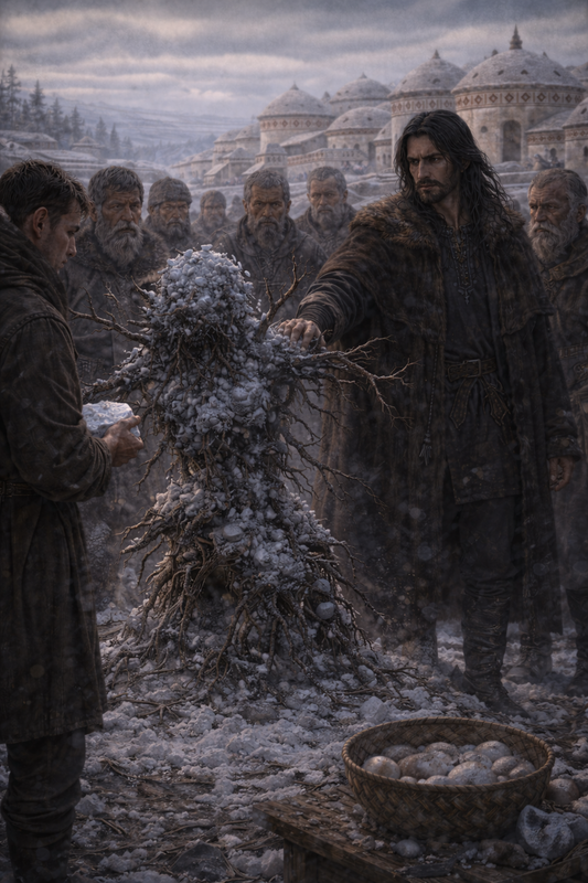 На центральній площі, де сходилися кільця поселення, земля була ще твердою від нічного холоду. Тут, серед витоптаного снігу й чорної, важкої глини, вже зібралися чоловіки.