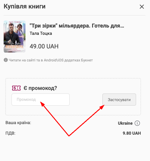 - Знайдіть на порталі книгу (до якої у вас є промокод).